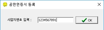 7-2. 사업자번호 입력하는 화면이 나옵니다. 사업자 번호 '-' 표기 없이 숫자만 입력하고 OK 버튼을 클릭합니다.
