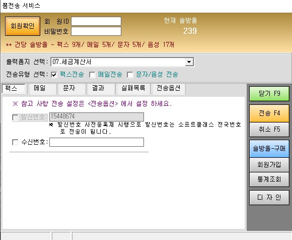 단, 발신전용 메일이나 팩스이기 때문에 전송 받는 업체에서 수신했는지 확인은 안됩니다. 수신확인은 알맹이 프로그램부터 가능합니다.