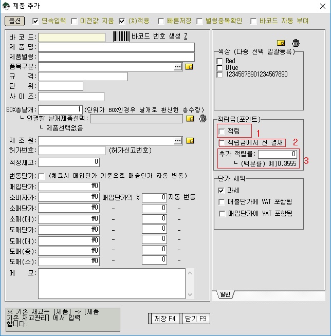 □ 적립 : 체크시 적립금이 누적됩니다. (그림 1.)